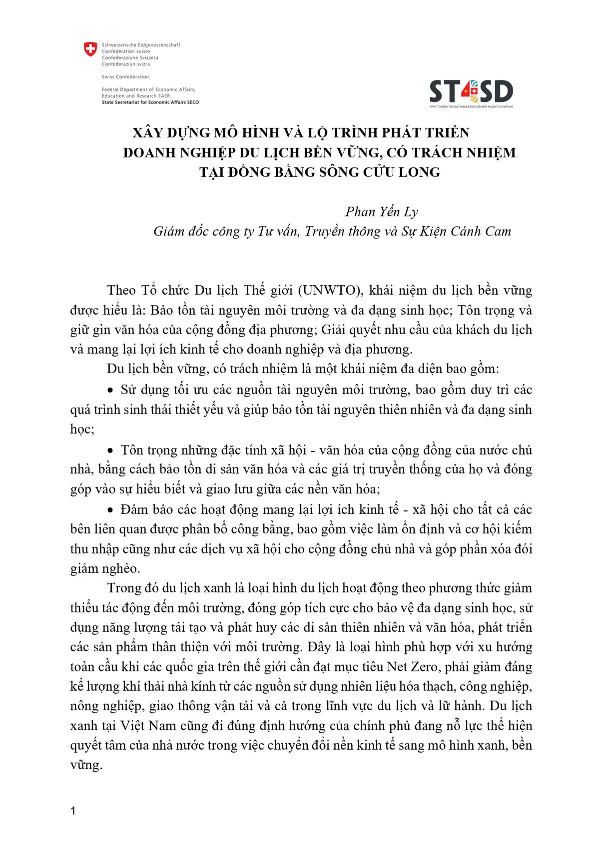 Xây dựng mô hình và lộ trình phát triển doanh nghiệp du lịch bền vững, có trách nhiệm tại đồng bằng sông Cửu Long