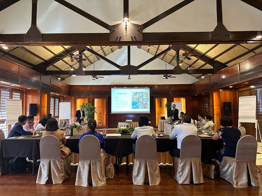Ngoài ra, dự án ST4SD còn tổ chức khoá đào tạo cho các đào tạo viên đến từ 4 cơ sở thí điểm. Trong 5 ngày, ông Berguerand đã chia sẻ với học viên về phương pháp giảng dạy tạo động lực cho người học, đồng thời hướng dẫn họ thực hành các bài tập kỹ năng theo tiêu chuẩn để lấy chứng nhận quốc tế của EHL cho đào tạo viên chương trình EHT tại Việt Nam.